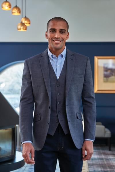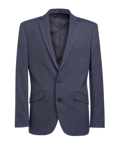 Coupe ajustée, fermeture à 2 boutons, fente centrale, 2 poches passepoilées obliques, poche poitrine passepoilée, 2 poches intérieures passepoilées, fente centrale.